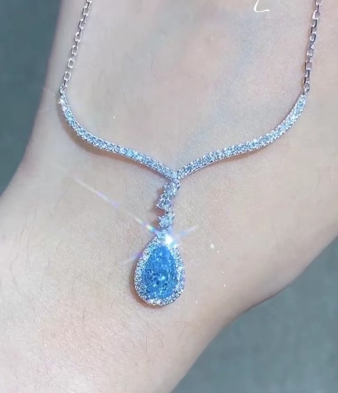 Błękitna gruszka 18K Białe złoto Diament Jasność VVS2 Produkcja biżuterii Zaangażowanie Biżuteria Laboratorium Diamentowy naszyjnik