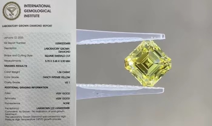 | Nazwa produktu | żółte diamenty hodowane w laboratorium |