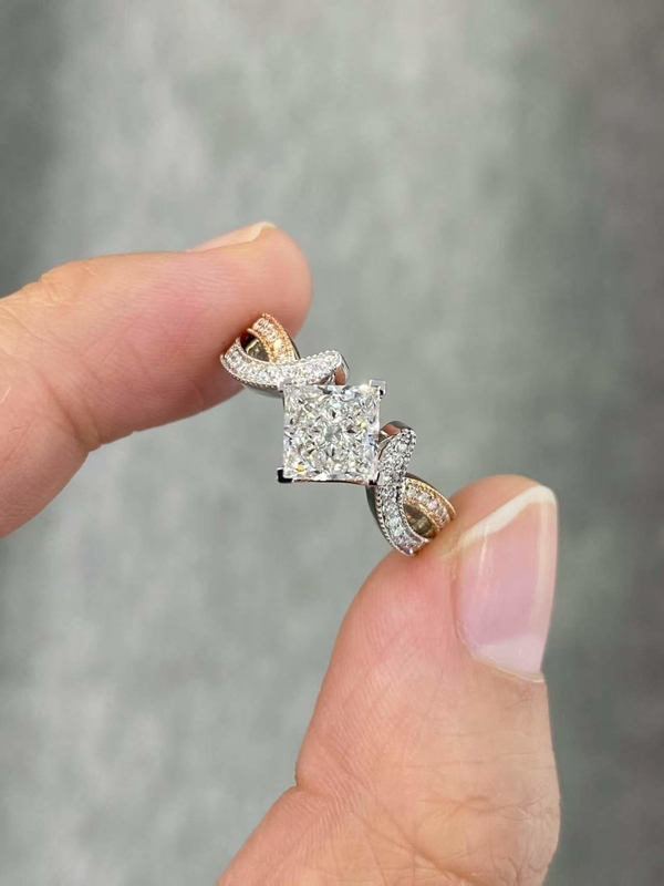 1.2ct Princess Cut White Lab Diament 18K White&Rose Gold Pierścień zaręczynowy